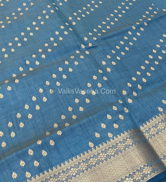 Semi Tussar Silk - Grand Pallu - Ramar Blue Shade - VVSTS017