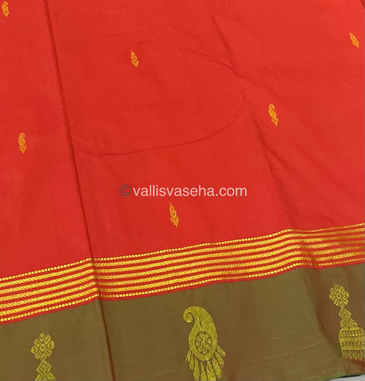 Pure Soft Silk Saree - Vaira Voosi Design - Blue & Peachish Orange Combo - VVPSS021
