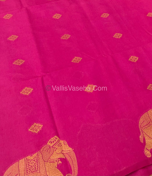 Banarasi Pochampally Weaving Semi Soft Cotton Saree - Pink with Green- VVBPS001