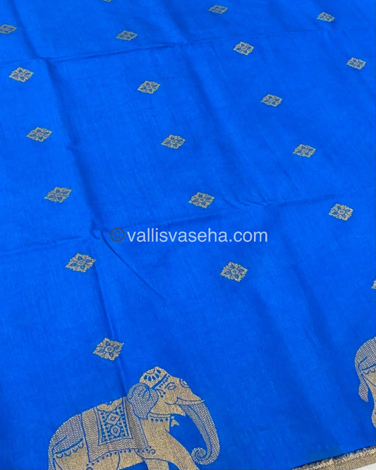 Semi Raw Silk with Jamdhani Design Weaving - Ramar Blue Shade - VVRS001