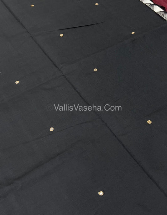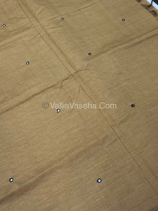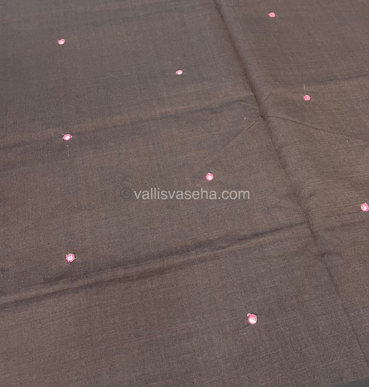 South Mixed Cotton - Mirror Work Embroidery - Chocolate Brown With Black - VVPCM002