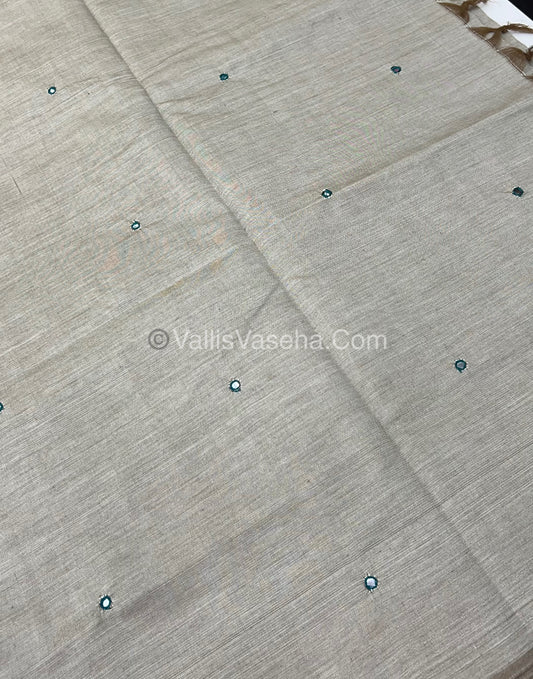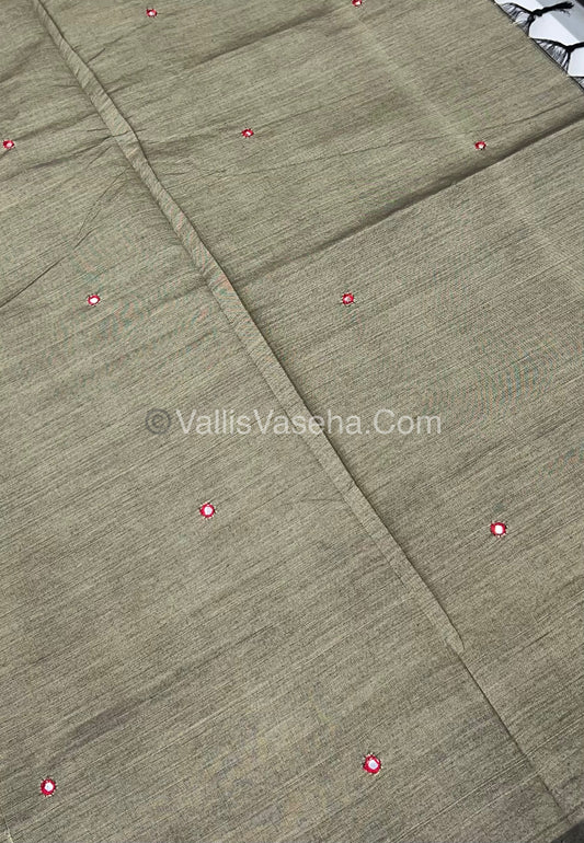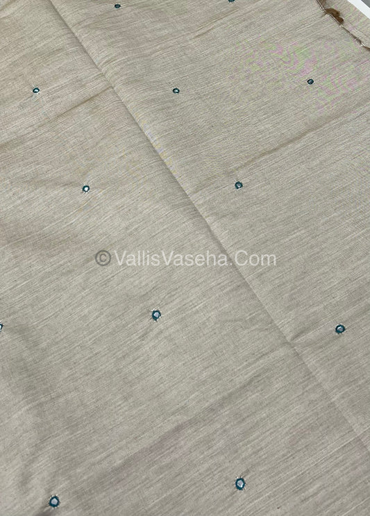 South Mixed Cotton - Mirror Work Embroidery - Creamish Grey With Green - VVPCM002