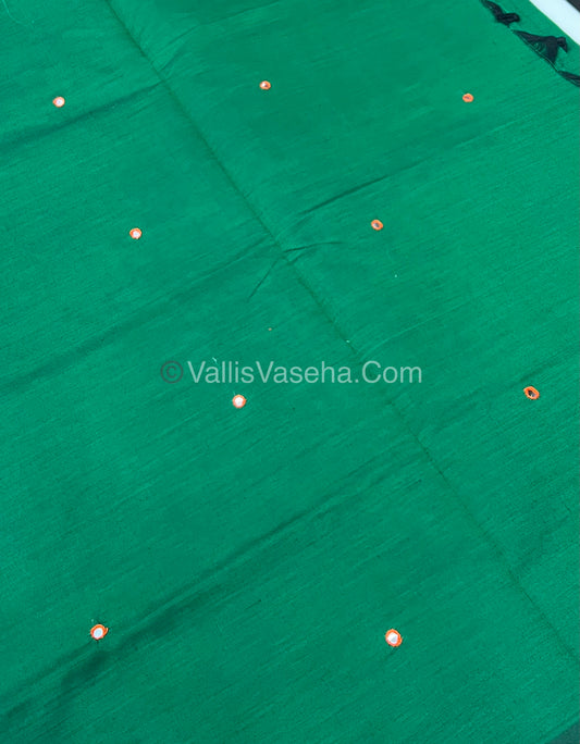 South Mixed Cotton - Mirror Work Embroidery - Green With Orange - VVPCM002