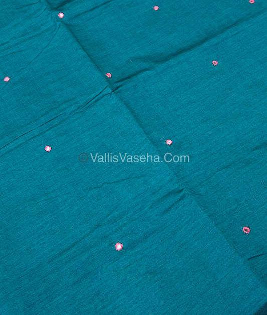 South Mixed Cotton - Mirror Work Embroidery - Bluish Green with Pink - VVPCM002