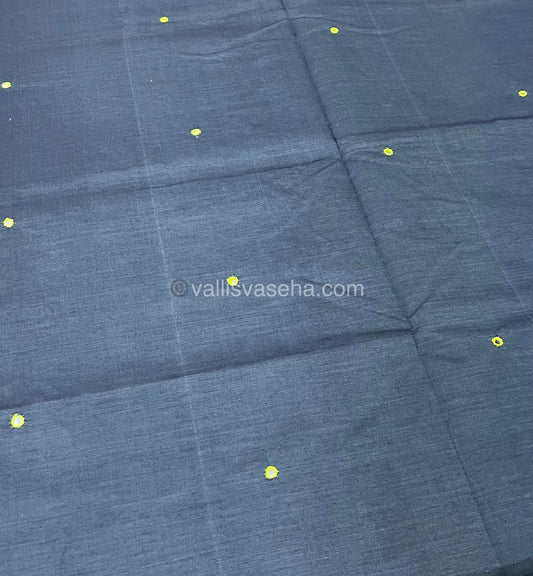 South Mixed Cotton - Mirror Work Embroidery - Blue With Greyish Cream- VVPCM002
