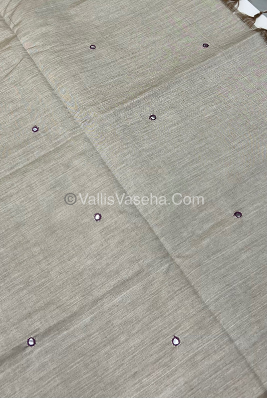 South Mixed Cotton - Mirror Work Embroidery - Cream with Purple - VVPCM002