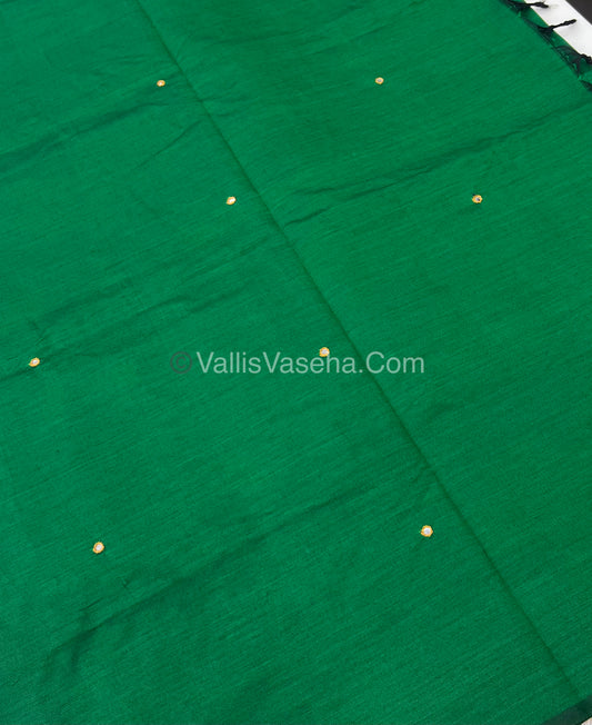 South Mixed Cotton - Mirror Work Embroidery - Green With Mustard shade - VVPCM002