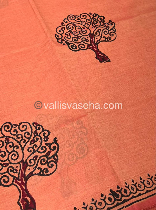 South Mixed Printed Cotton - Peachish Orange With Black - VVPCP003