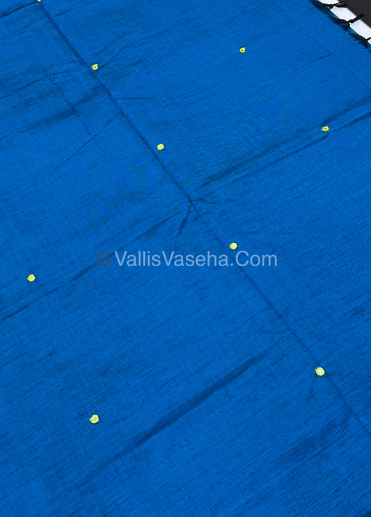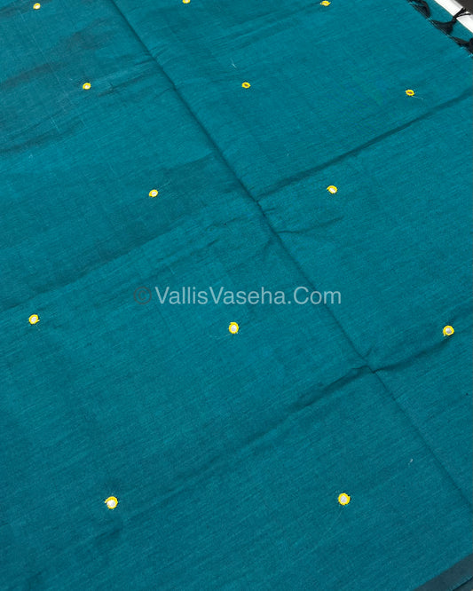South Mixed Cotton - Mirror Work Embroidery - Blue with Lemon Green- VVPCM002