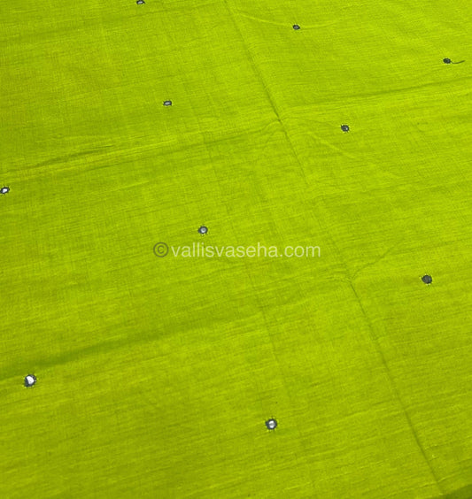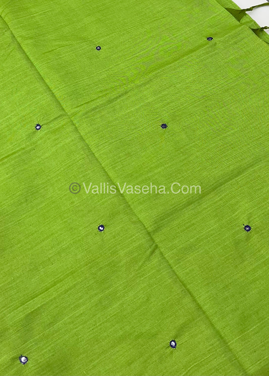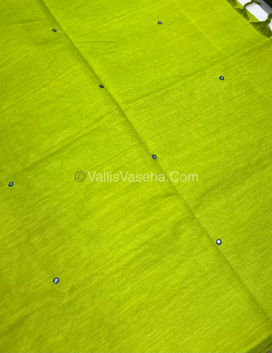 South Mixed Cotton - Mirror Work Embroidery - Lemon Green With Blue - VVPCM002