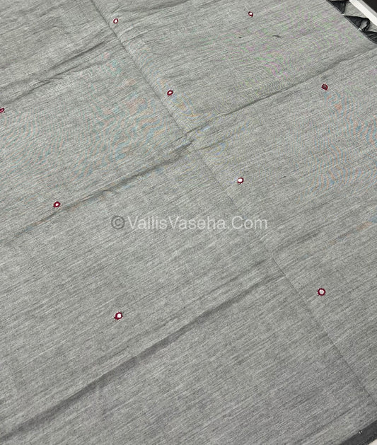 South Mixed Cotton - Mirror Work Embroidery - Grey ( Cement Colour )with Red - VVPCM002