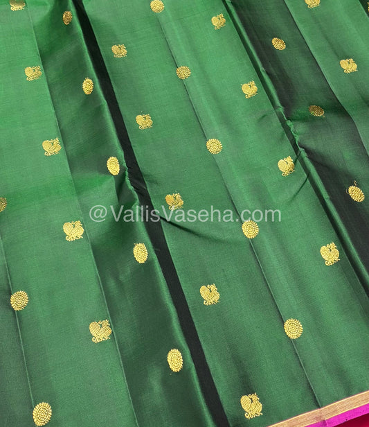 Pure Kanchipuram Silk Saree - Green with Pink Combo - VVPS021
