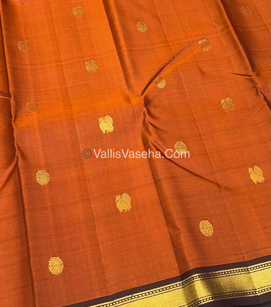 Pure Kanchipuram Silk Saree - Rust Orange & Wine Brown shade - VVPS021