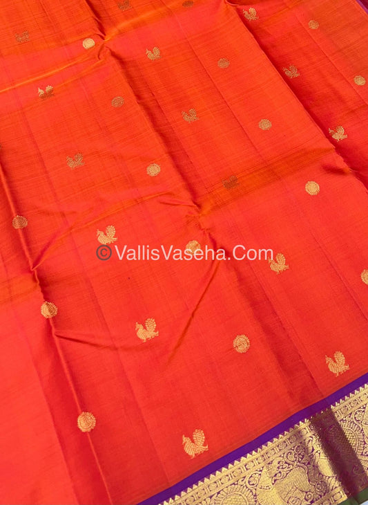 Pure Kanchipuram Silk Saree - Bright Orange & Purple Combo - VVPS014