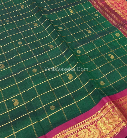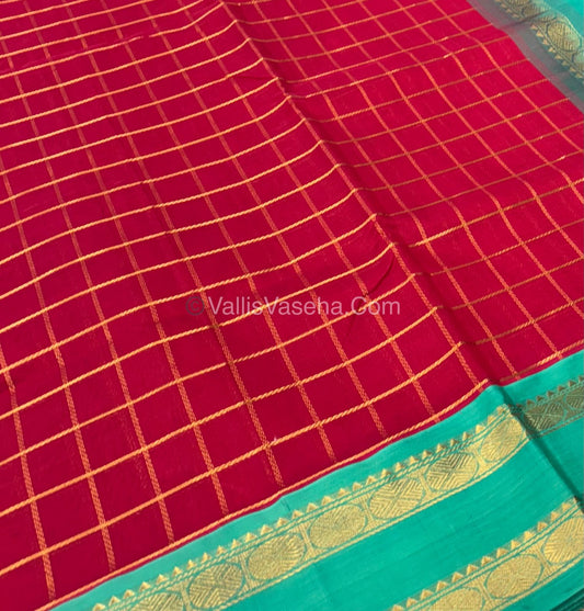 Pure Korvai Silk Cotton - Podi Kattam - Merun & Black with Teal Green - Retta Petta Border - VVKSC003