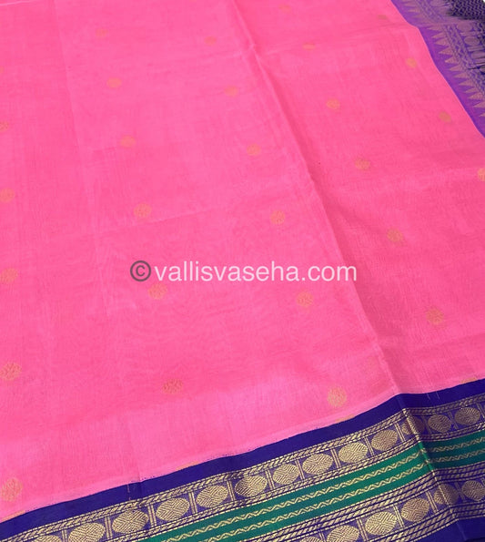 Pure Korvai Silk Cotton Saree - Pink with Blue - VVKSC004