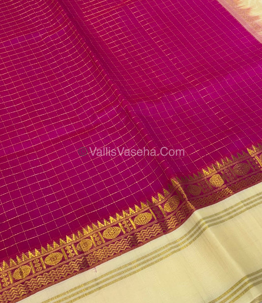 Pure Korvai Silk Cotton - Lavender with Black - Checks Pattern - VVKSC021