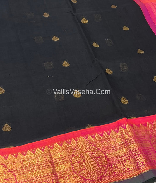 Pure Korvai Silk Cotton Saree - Black with Peach - VVKSC019