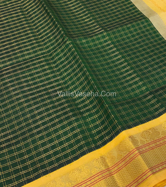 Pure Korvai Silk Cotton - Mango Yellow with Blue - Checks Pattern - VVKSC008