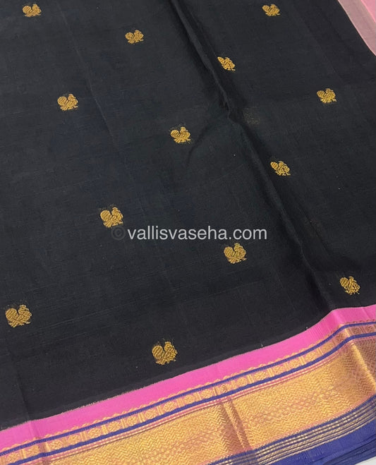 Pure Korvai Silk Cotton Saree - Black with Pink - VVKSC004