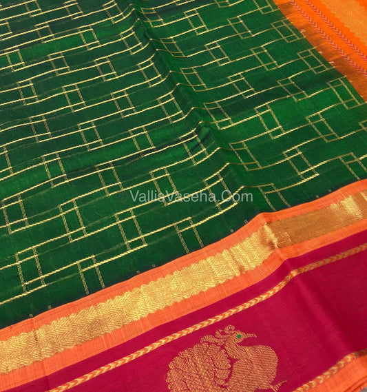 Pure Korvai Silk Cotton Green With Red & Orange - VVKSC020