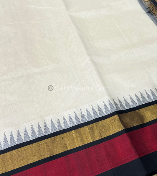 Pure Korvai Silk Cotton Saree - Cream With Black Shade Temple border - VVKSC001