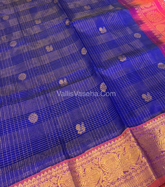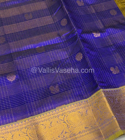 Pure Silk Cotton Saree - Vairavoosi checks - Mayil & Chakkaram - VVMCV002