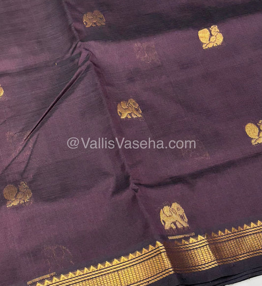 Pure Silk Cotton Saree - Mayil & Elephant Design - Dark Brown - VVMES001