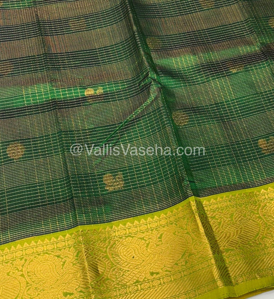 Pure Silk Cotton Saree - Pazhum Pazhamum Checks Design - Green Pallu - VVPPSC01
