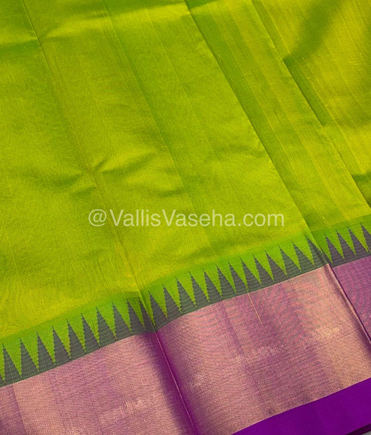 Pure Korvai Silk Cotton Saree - Sneha Green With Purplish Pink Shade Temple border - VVKSC001