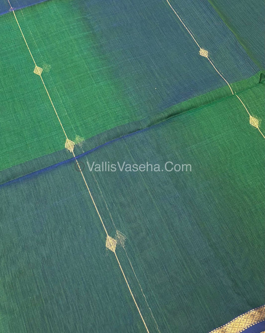 Pure Maheshwari Silk Cotton Saree - Double tone Bluish Green Color - VVMSC001