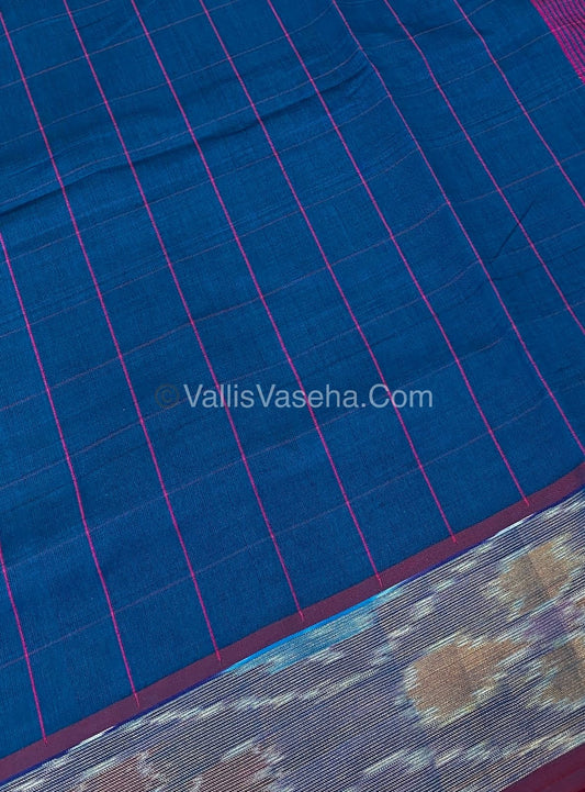Semi Silk Cotton Saree - Blue & Blue Combo - VVSSC001