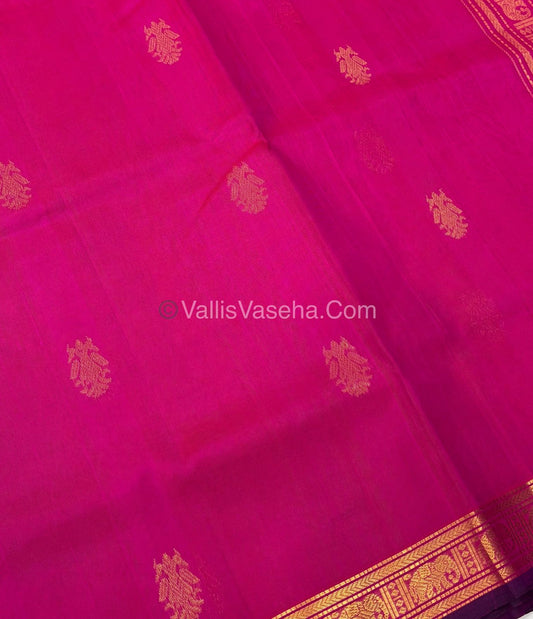 Pure Silk Cotton Saree - Retta Mayil Design - Pink Shade - VVRMS001