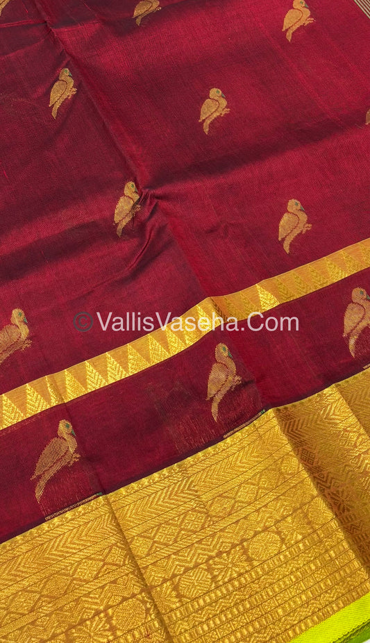 Pure Silk Cotton Saree - Mayil & Chakkaram Design - Maroon With Peach Shade - VVMC002