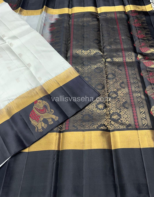 Pure Soft Silk Saree - Half White with Black - VVPSS028