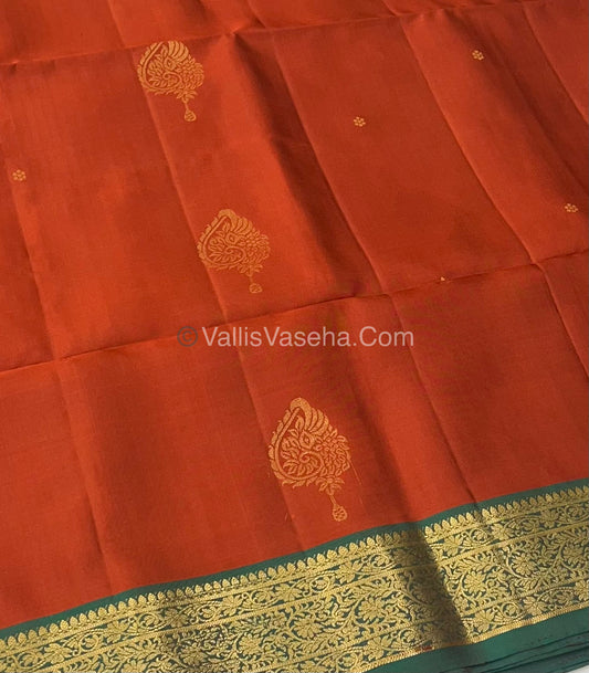 Pure Soft Silk Saree - Kanchi Border - Velum & Mayilum - Rust Orange & Green Combo - VVPSS046