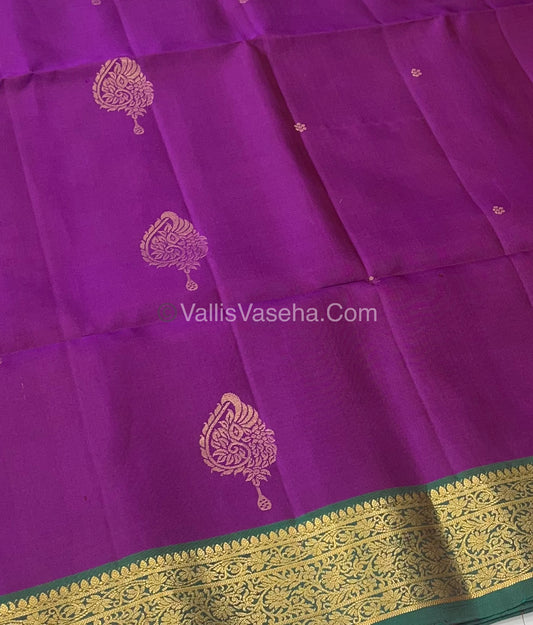 Pure Soft Silk Saree - Kanchi Border - Velum & Mayilum - Purplish Pink & Green Combo - VVPSS046