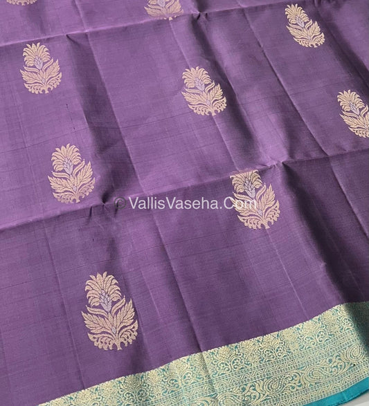 Pure Soft Silk Saree - Kanchi Border - Violetish Purple & Black Combo - VVPSS046