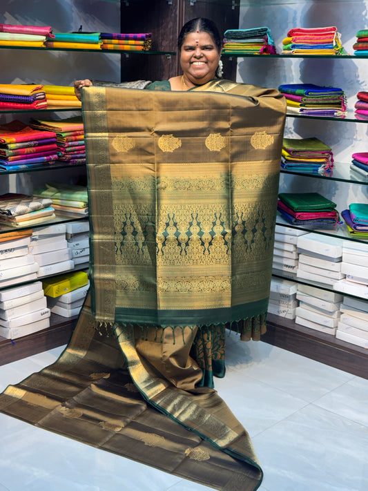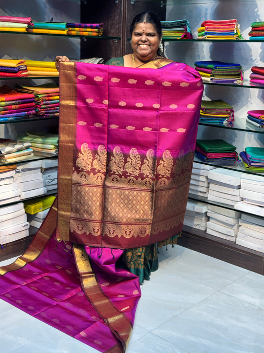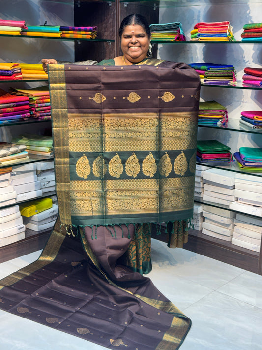 Pure Soft Silk Saree - Kanchi Border - Velum & Mayilum - Grey & Wine Brown Combo - VVPSS046