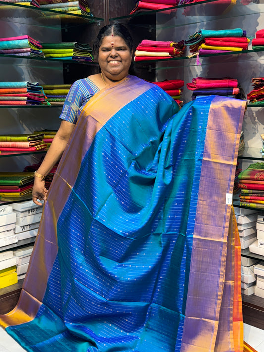 Pure Soft Silk Saree - Light weight - Border Less - Blue & Peach - VVPSS035