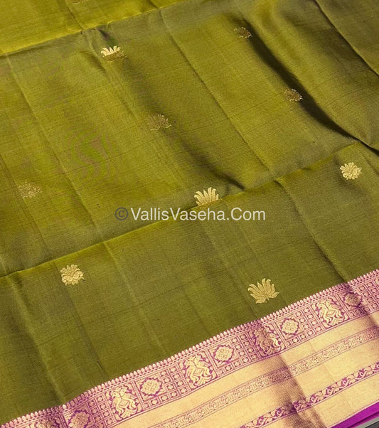Pure Soft Silk Saree - Kanchi Border - Green & Purple Combo - VVPSS046