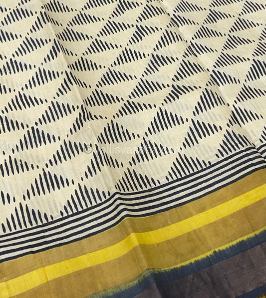 Pure Tussar Silk - Cream With Yellow & Black Shade - VVPTS001