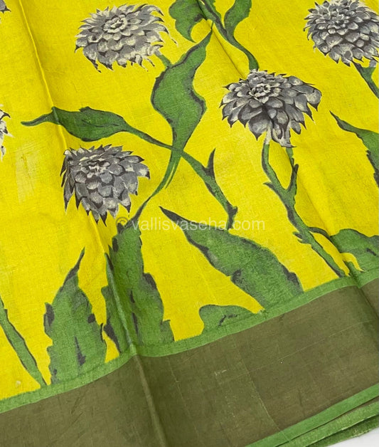 Pure Tussar Silk - Yellow With Green Shade - VVPTS001