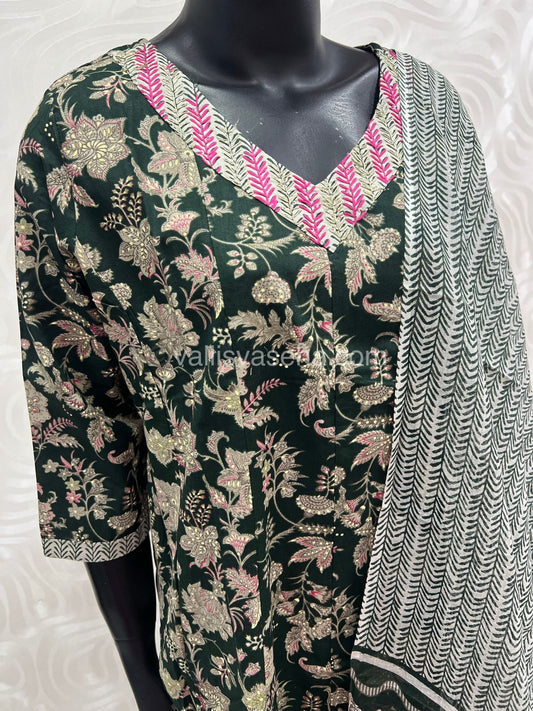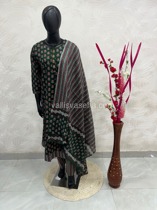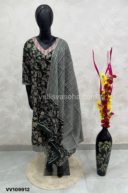 Ready Made - Anarkali - Salwar, Kameez & Duppatta(3pc)- Printed Cotton - VVAS005