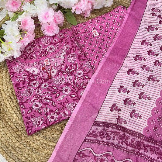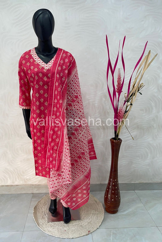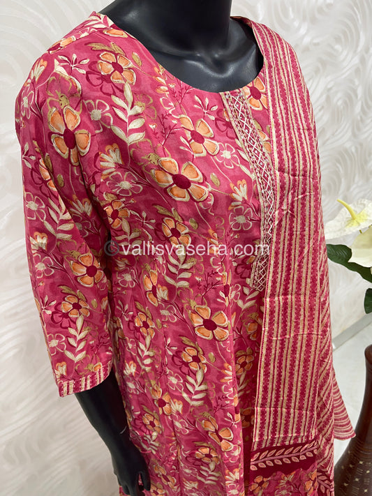 Anarkali - Pink Shade - Salwar, Kameez & Duppatta(3pc)- Fancy Cotton - VVRAS001