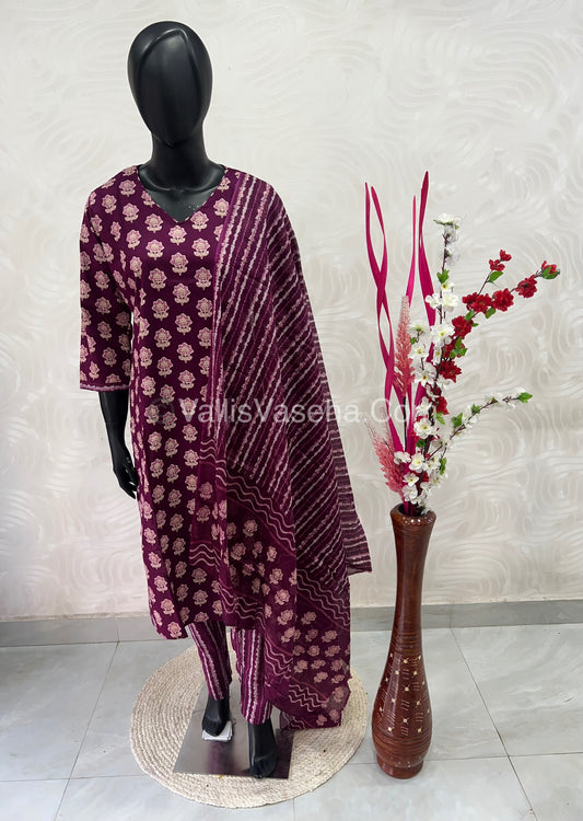 Ready Made - Salwar, Kameez & Duppatta(3pc) -Ikkat & Ajrakh Print - VVRWS001