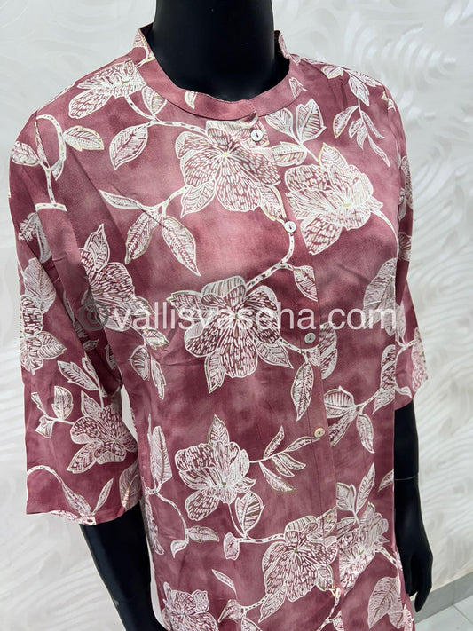 Trendy Printed Cotton - Co-ord Set - Maroon Shade - VVRCS001