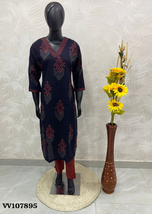 Salwar & Kameez(2pc) Set - Ajrakh Print Black & Merun Combo - VV107895 - VVRCS004