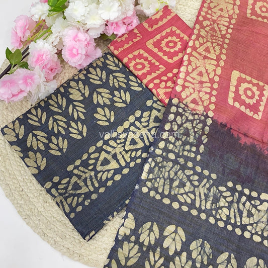 Do you need a garment to fit you perfect? Valli's Vaseha presents its wide range of unstitched dress material for you to experiment with different styles and fit it as you like it. Women often prefer buying unstitched suits over stitched as they can customise the unstitched fabrics in varied styles and patterns as they like it.We have Different fabric like Cotton, Rayon, Silk, Linen, Chanderi , Batik , Ajrakh, Kalamkari, Ikkat, Tissue, etc