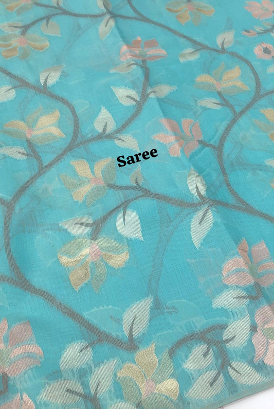 Semi Raw Silk with Jamdhani Design Weaving - Blue Shade - VVRS001